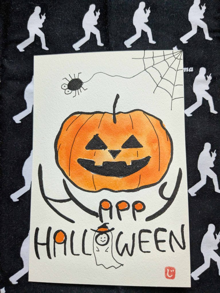 カラフル筆ペンでハロウィンカードを描く 利き手と反対の手で棘々しさを表現しよう