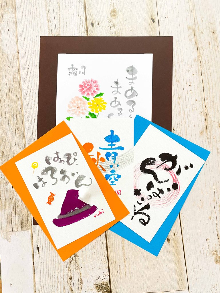 絵と文字を組み合わせ、筆ペンで味わい深い作品を楽しく仕上げていきます。