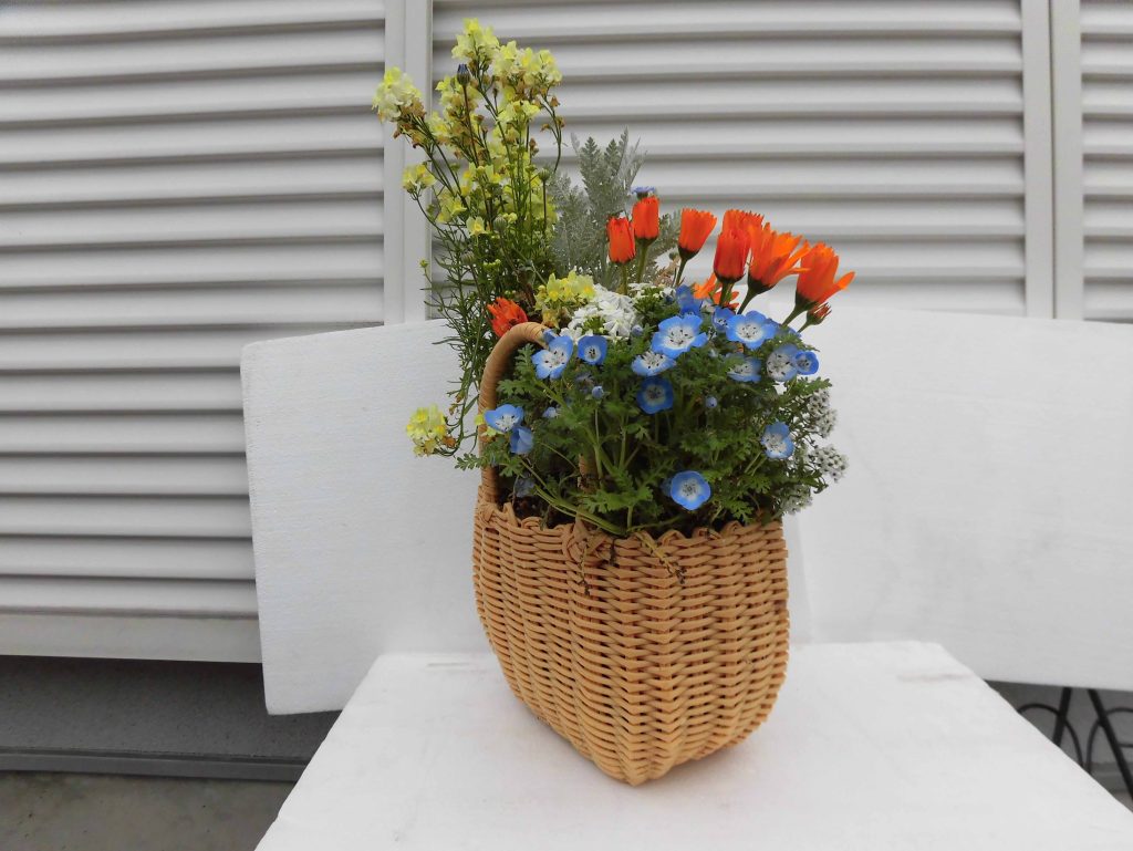 【持ち物】土を触ることになるので、手袋を持参。ハンギングバスケットではS字フック。作品をお持ち帰りできるように準備