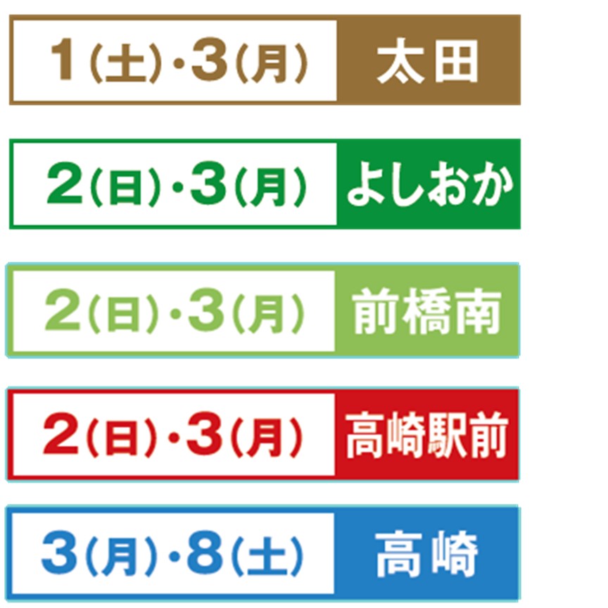 ※11/10 ~ 12/25 は全5会場で毎日実施。