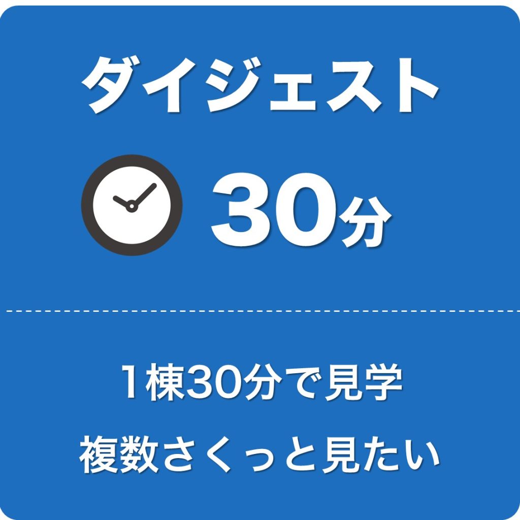 30分で1棟見学!最大で4棟まで一気に見学できる「ダイジェスト見学プラン」、1棟をじっくり見学する「じっくり見学プラン」2つの見学プランをご用意しています。