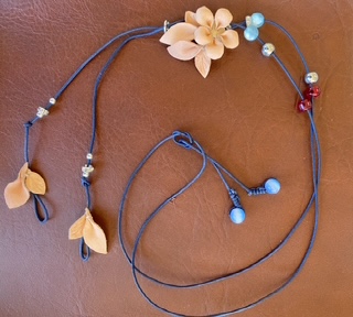 ヌメ革の花と天然石ビーズのアクセサリー