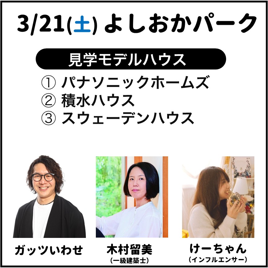 ぐんま住みます芸人&女性の建築家&インフルエンサーと一緒にモデルハウスをめぐる見学ツアーを開催します!1日で3~4カ所のモデルハウスを見学して「楽しく知る」「比べて見る」を短時間で体感できる特別なツアーです!見学後には、参加特典としてAmazonギフトカードのプレゼントもご用意してます♪