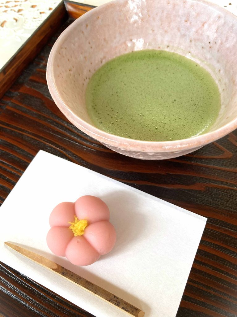 テーブルと椅子で、ほっとひと息の茶道体験。季節のしつらえと和菓子も楽しんでください。