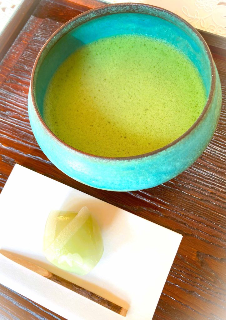 テーブルと椅子で、ほっとひと息の茶道体験。季節のしつらえと和菓子も楽しんでください。