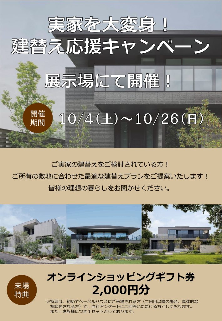 実家を大変身!建替え応援キャンペーン10/4~10/26