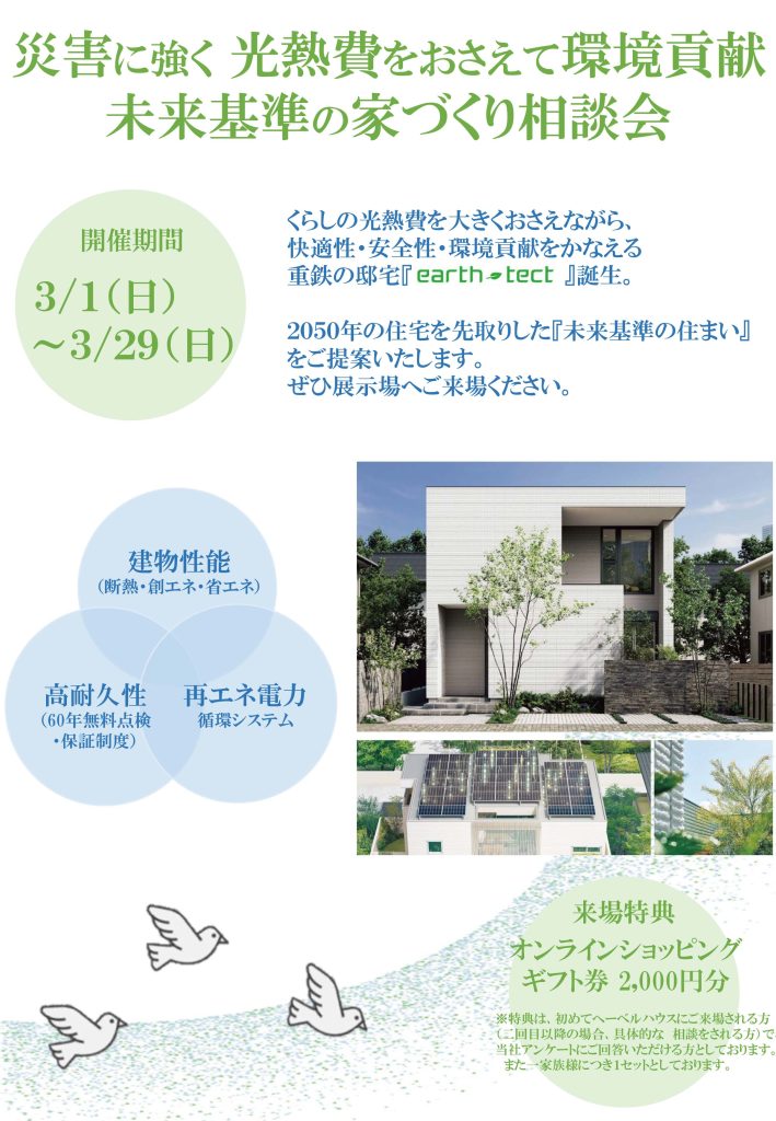 災害に強く光熱費を抑え環境貢献!未来基準の家づくり相談会3/1~3/29
