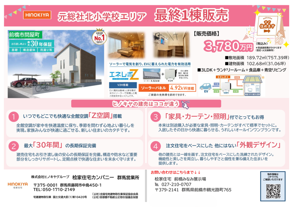 【桧家住宅】前橋問屋町戸建分譲 最終1棟!
