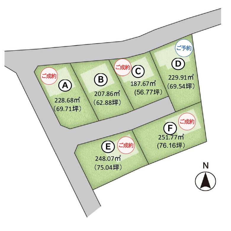 富岡I.C近くの分譲地。上州富岡駅まで約2kmで通勤・通学に便利な6区画