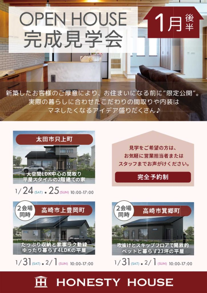 1月の見学会開催予定・モデルハウス新着情報