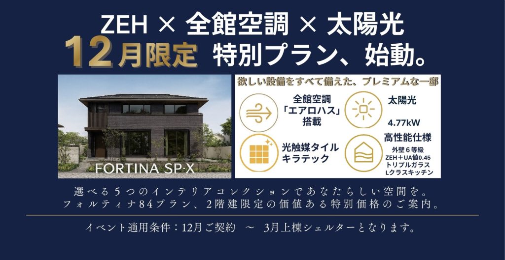 【12月限定】ZEH×全館空調×太陽光の特別プラン、始動。