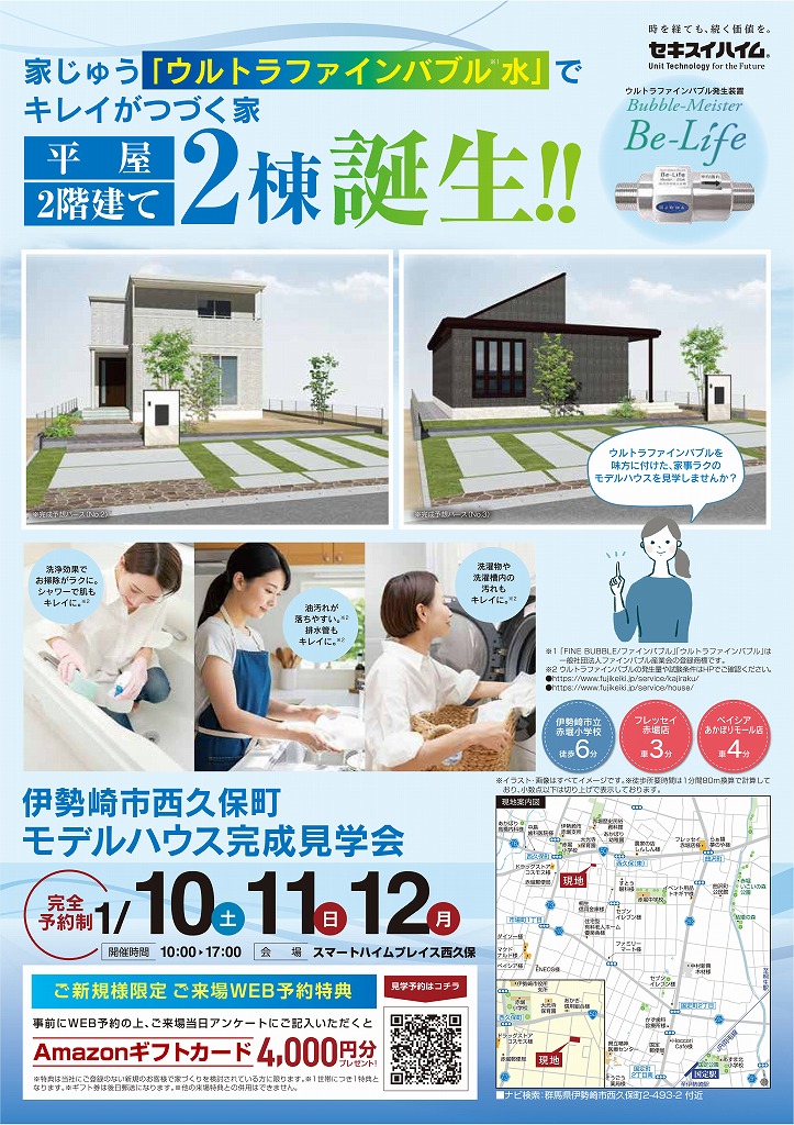 \家じゅうウルトラファインバブル水/モデルハウス2棟完成見学会【1/10(土)11(日)12日(月)】@伊勢崎市西久保町