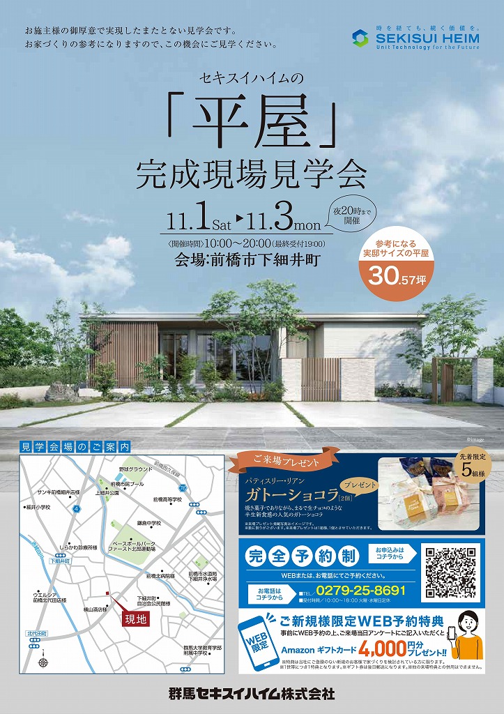 <平屋>完成実例見学会開催!!【11/1(土)~3(月)】@前橋市下細井町