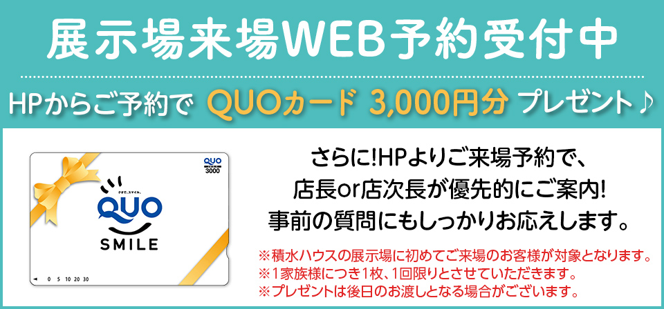 【WEBからの展示場見学お申込みで!】クオカード3,000円分プレゼントキャンペーン