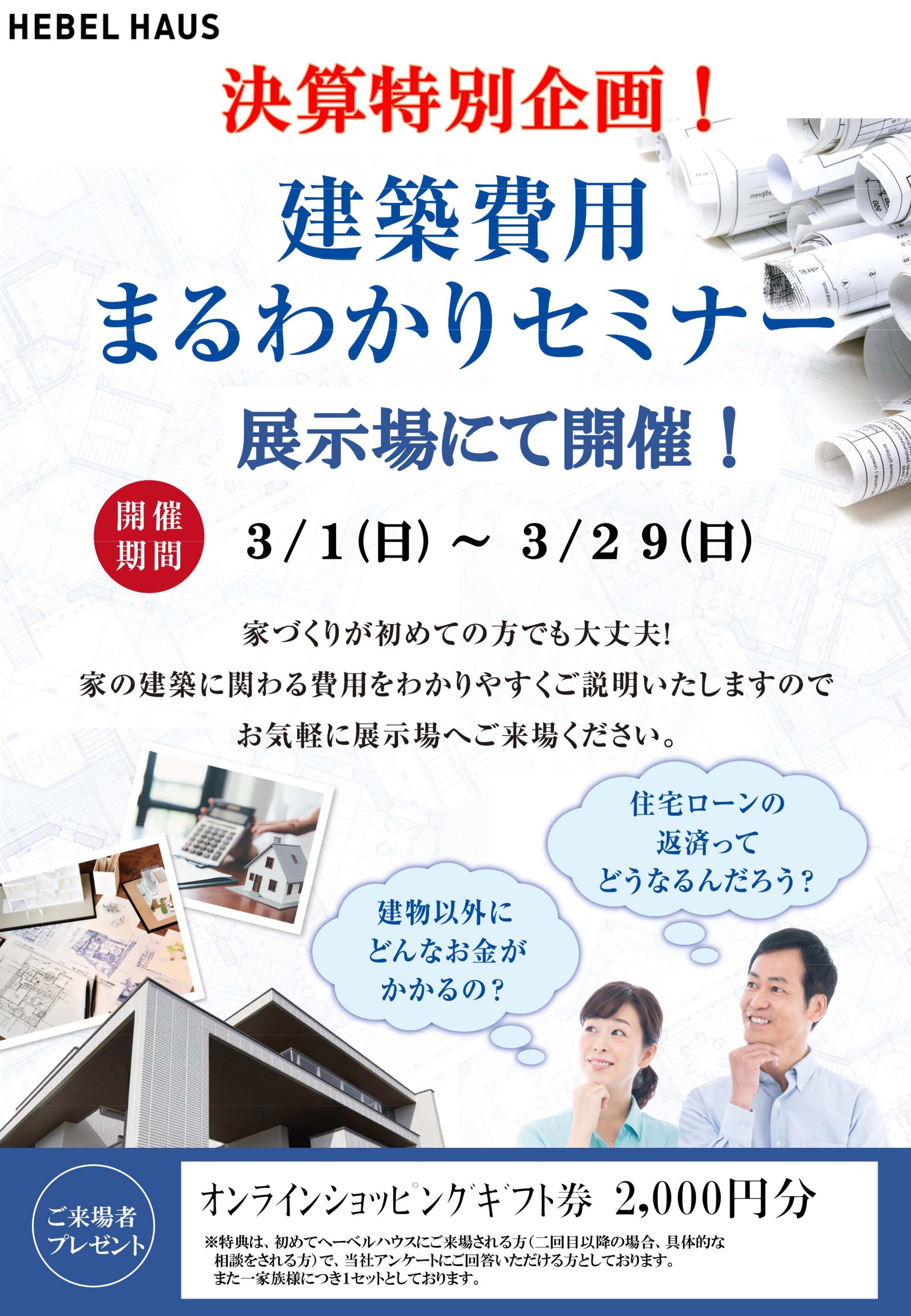 決算特別企画!建築費用丸わかり相談会3/1~3/29