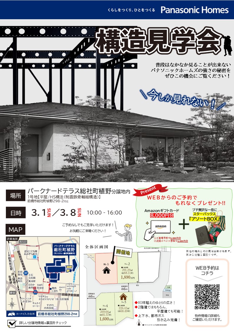 【パークナードテラス前橋総社植野】構造見学会【3月1(日)8(日)】